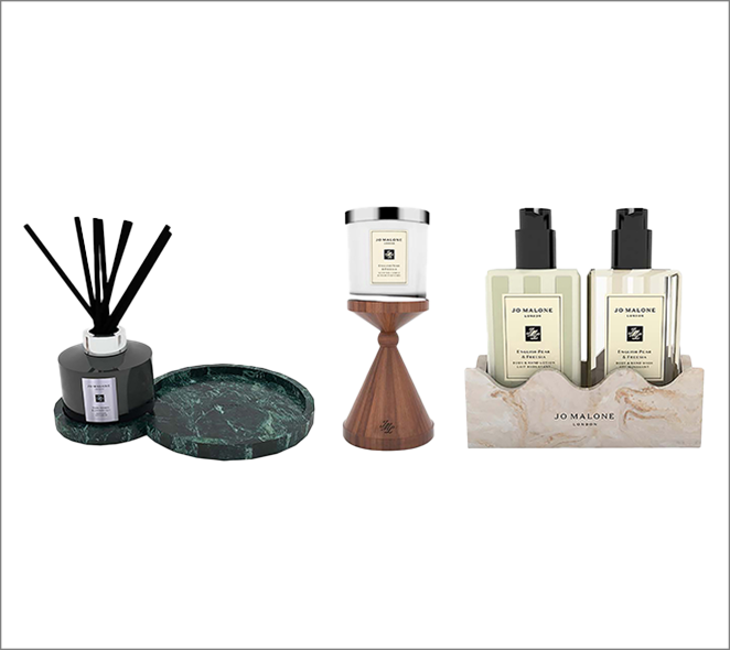 マーブル、ウッド、コーリアンといった贅沢で厳選された素材を用い、洗練されたデザインと機能性を兼ね備えたホーム、バス&ボディコレクション。