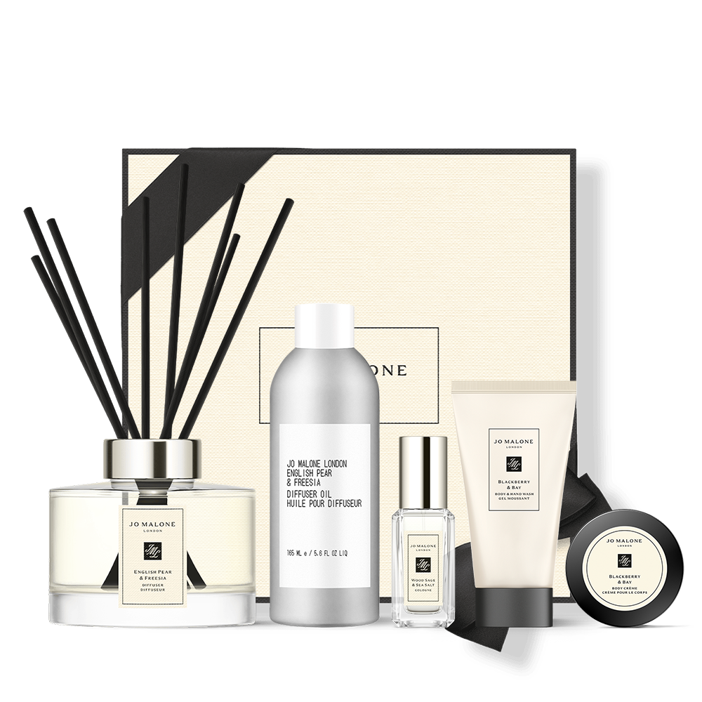 洋梨の官能的なみずみずしさを白いフリージアのブーケで包み込んだブランド人気No.1の香りイングリッシュ ペアー & フリージアのディフューザーとリフィルがセットになったブラック フライデー限定コレクション。