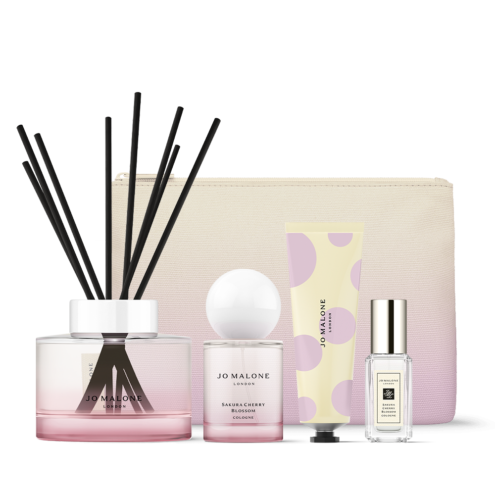 繊細な桜の香りでお部屋を満たすディフューザーに、限定デザインのコロンやハンドクリーム、今だけのポーチなどがセットになりました。
